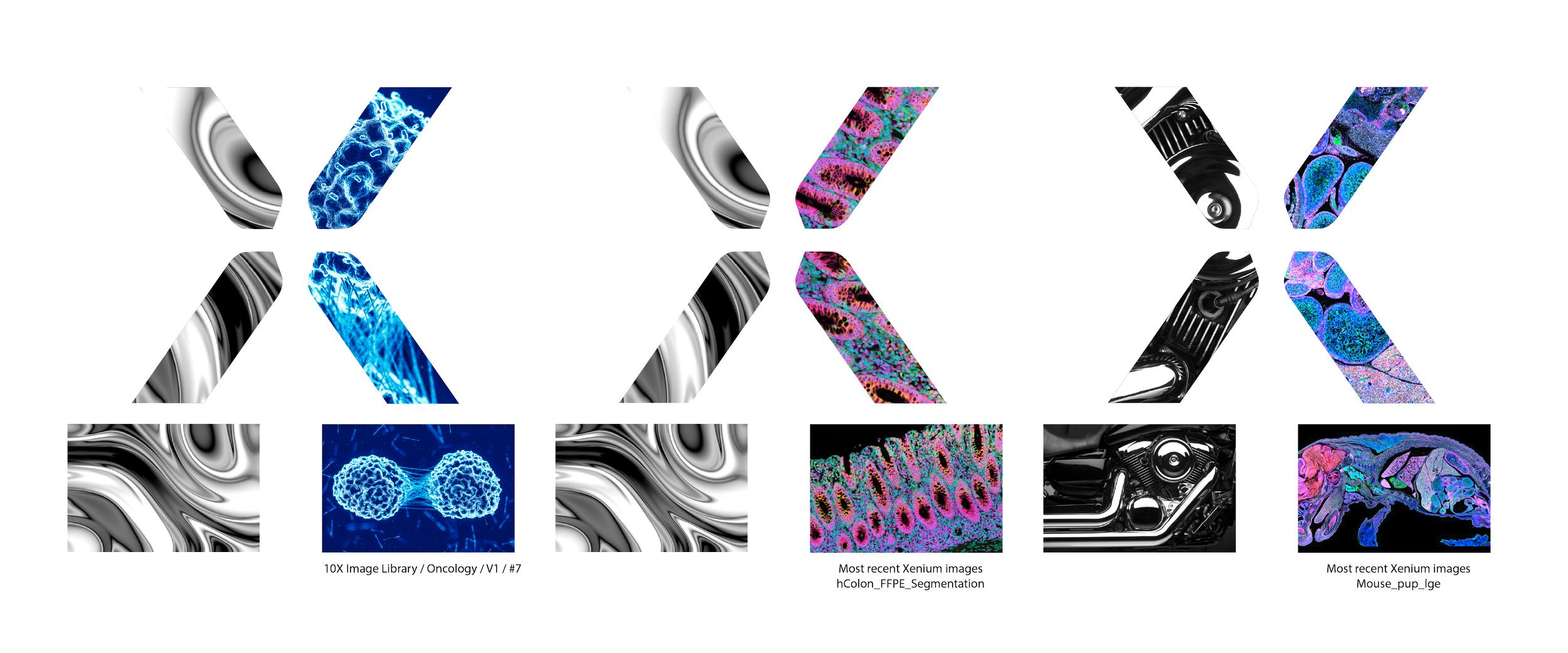 To feature the imaging tools 10x Genomics offers, we created a design system to merge together these macro cell images with with black and white motorcycle themed imagery.